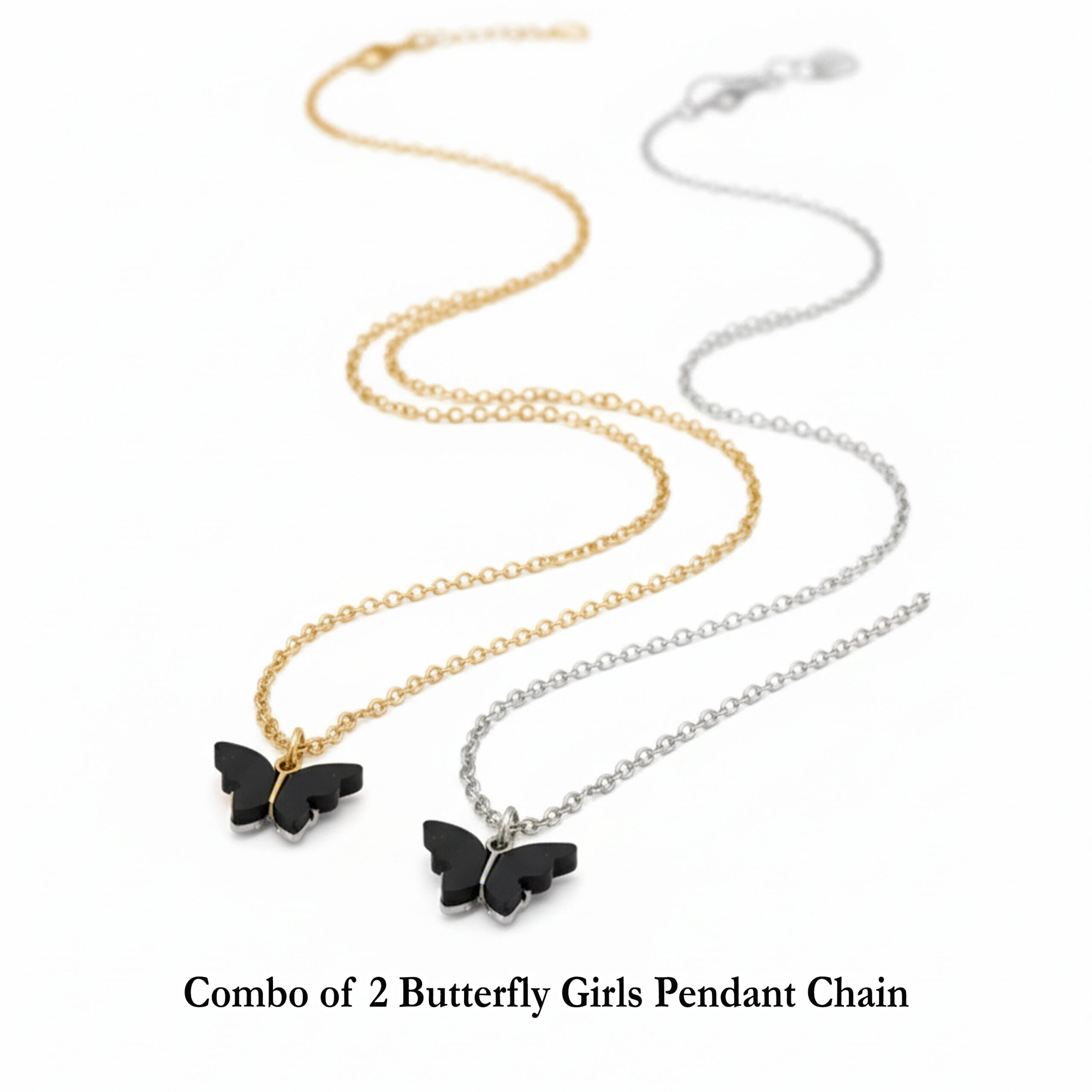 Combo of 2 Black Butterfly Pendant Nack Chains for Girls & Women – Gold & Silver Chain Set