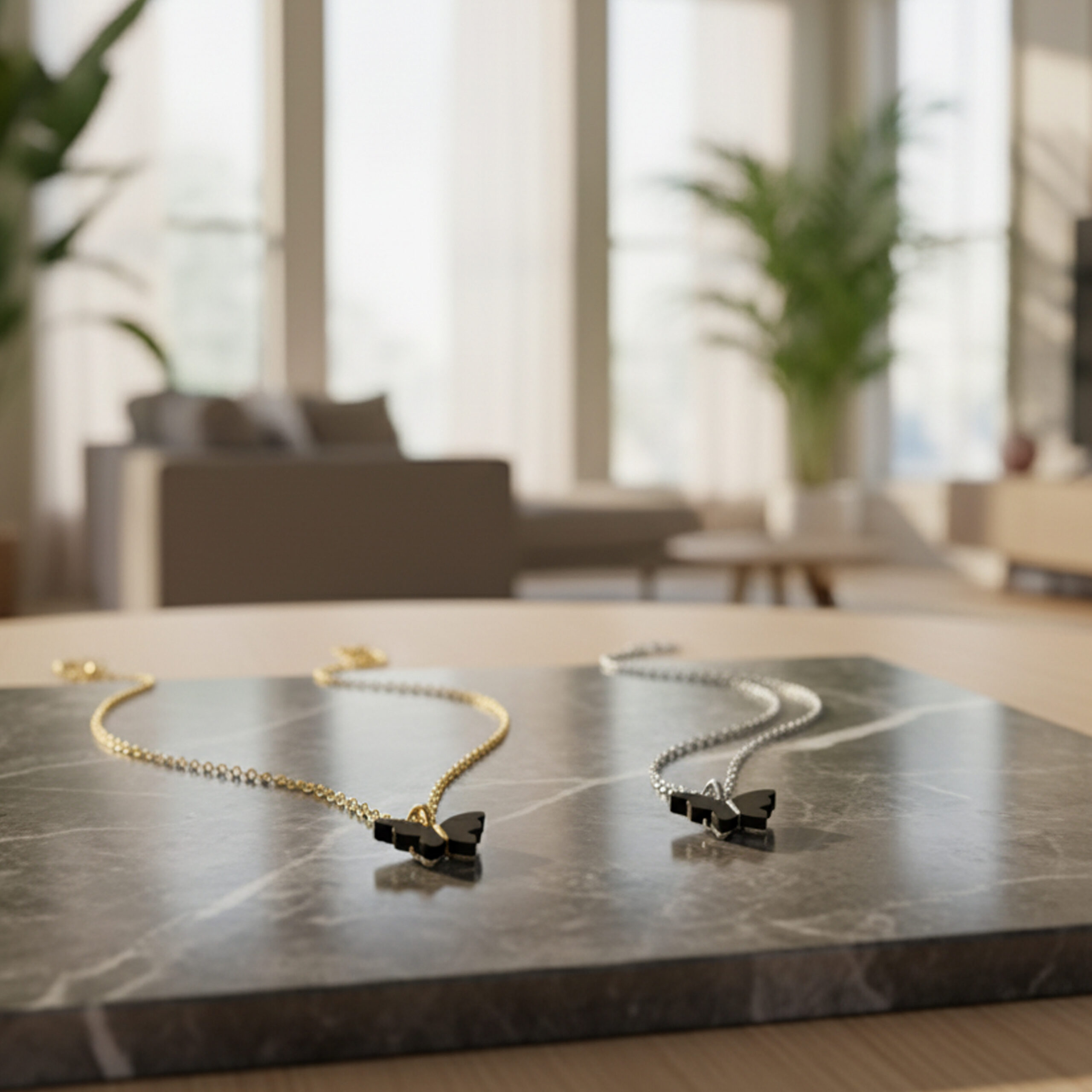 Be the first to review “Combo of 2 Black Butterfly Pendant Nack Chains for Girls & Women – Gold & Silver Chain Set”