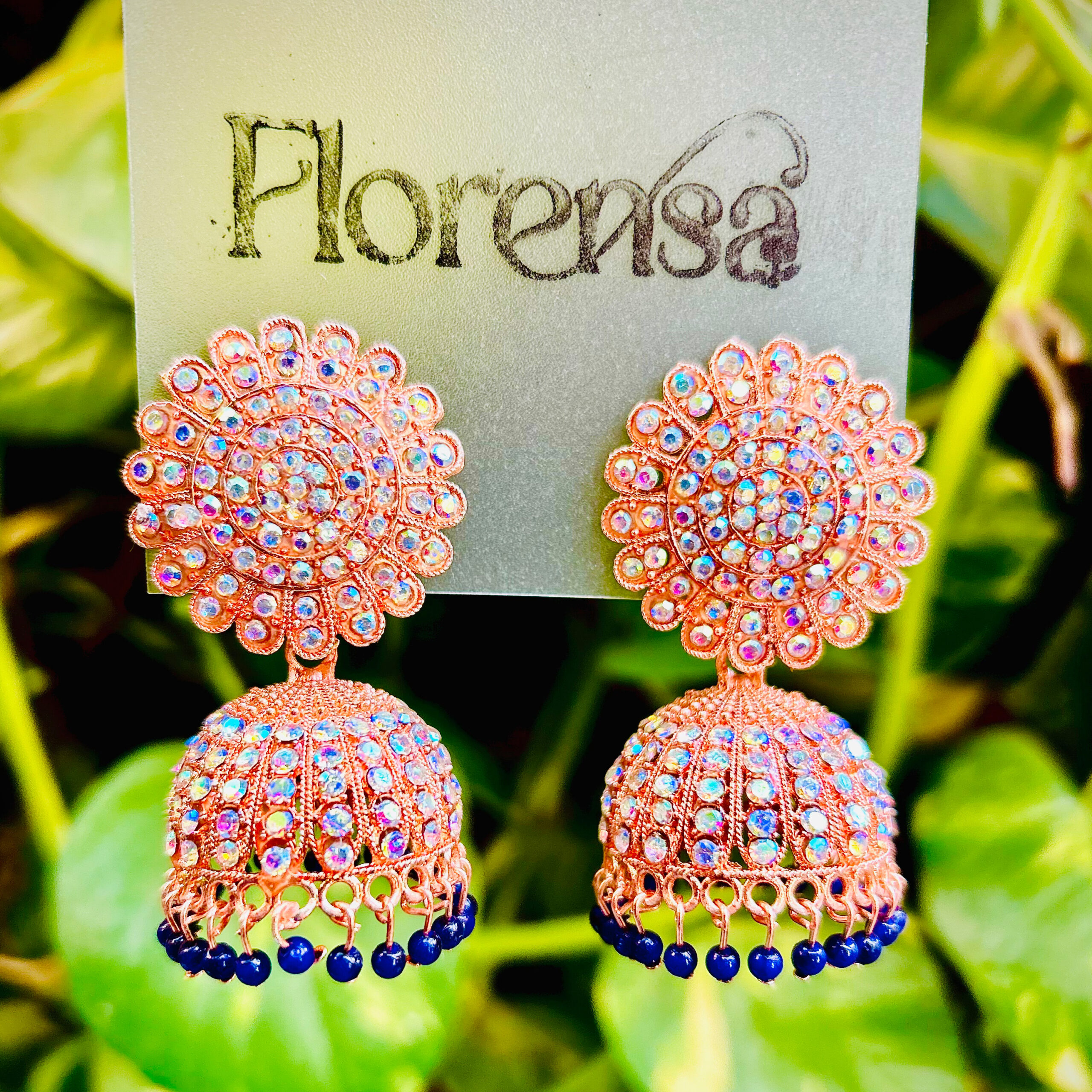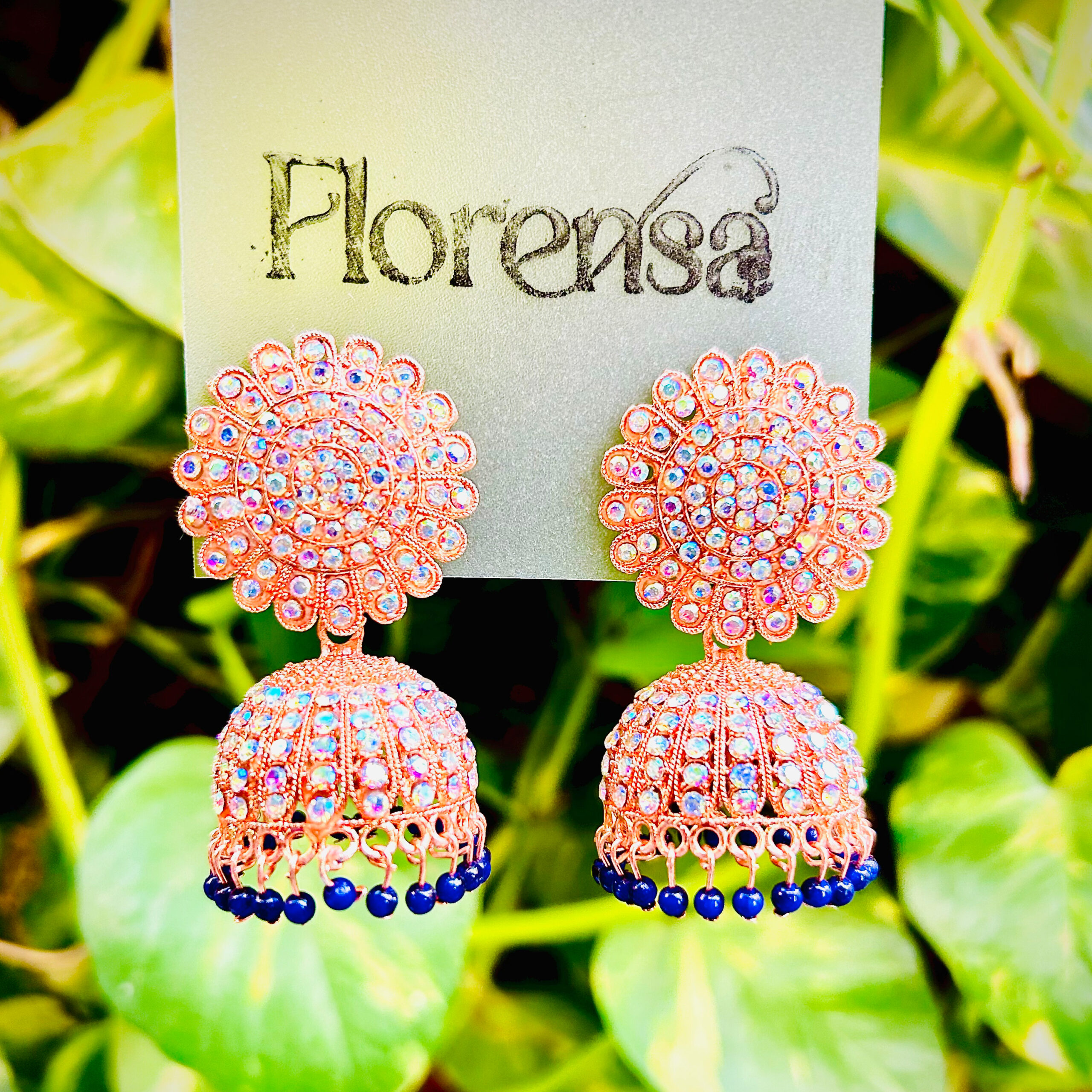 Florensa Blush Bloom Blue Bead Jhumka