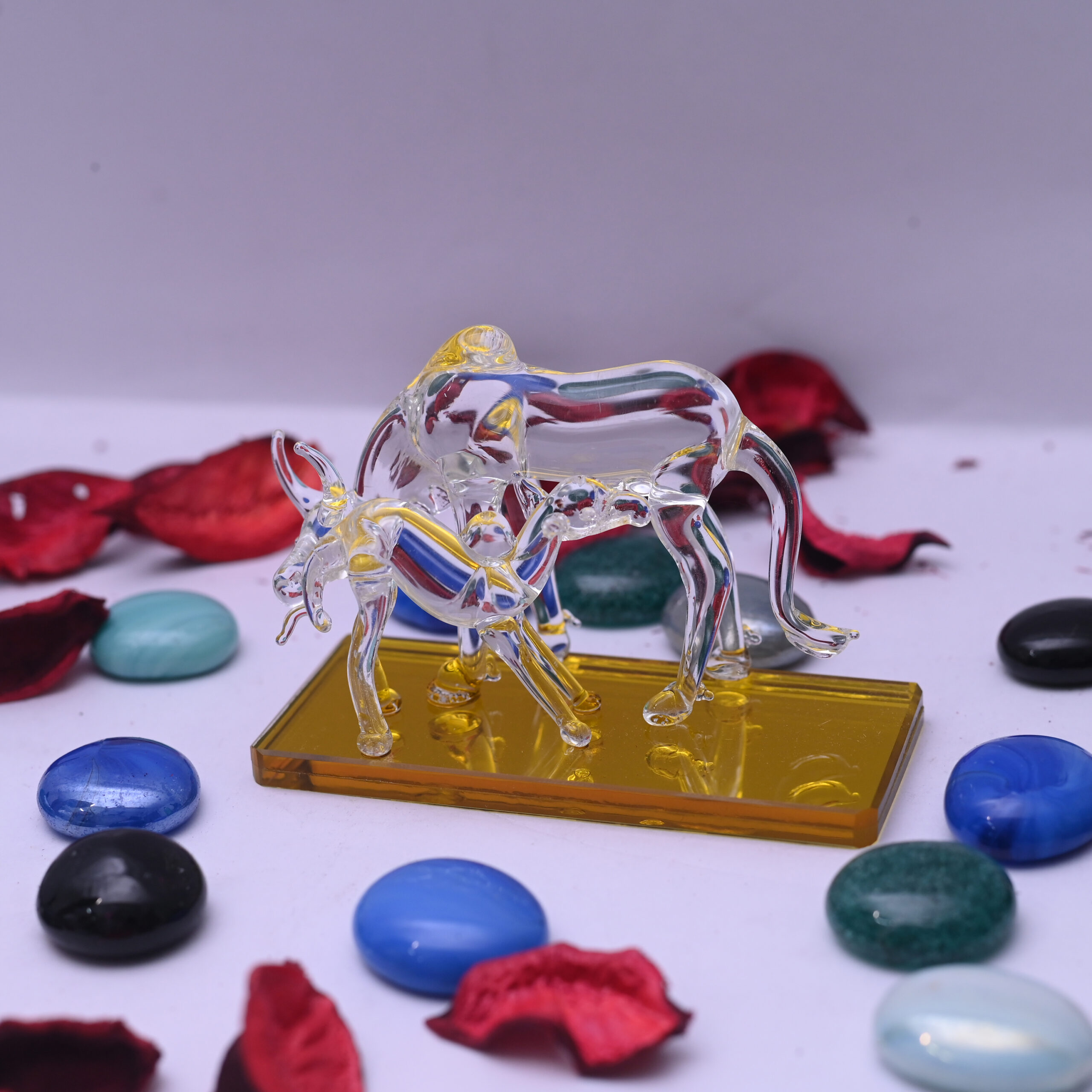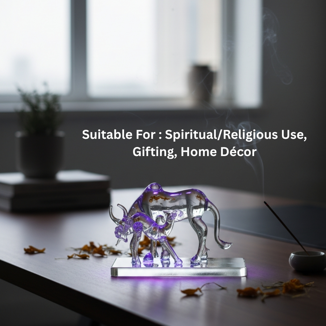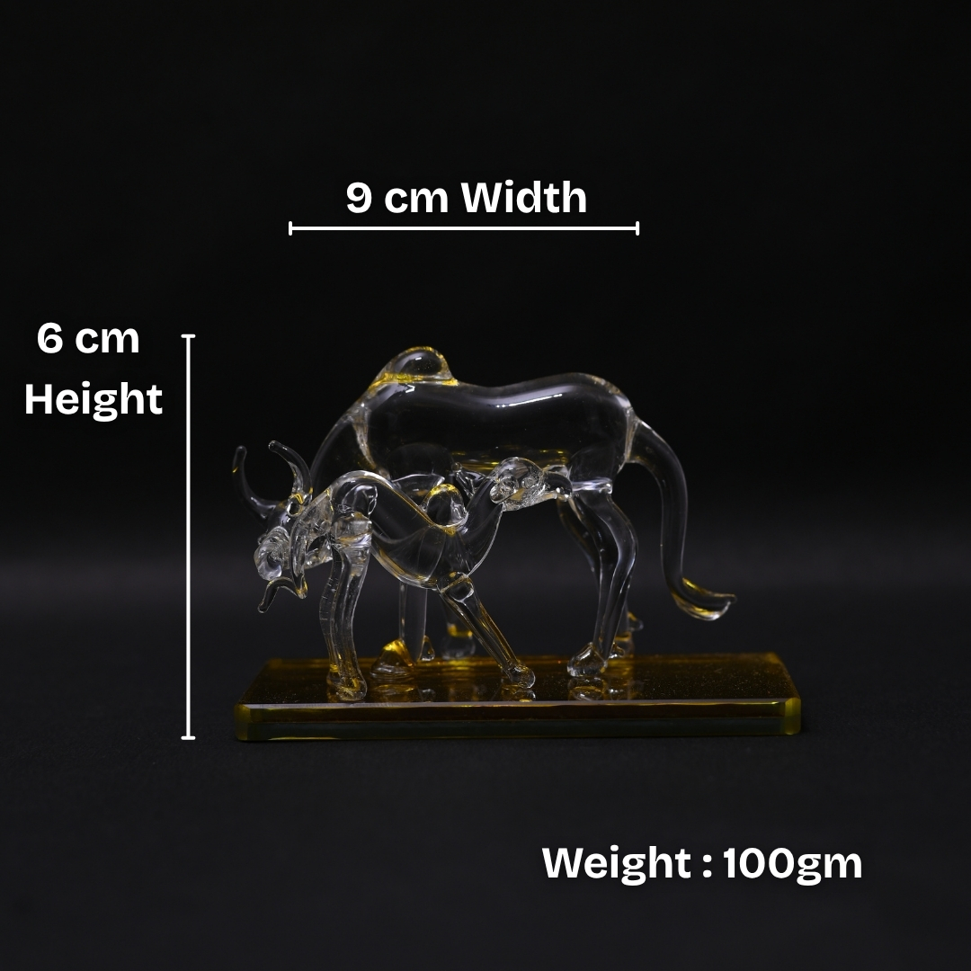 Embrace tradition and serenity with the Florensa Handcrafted Glass Cow and Calf Showpiece, skillfully crafted from premium crystal glass with intricate detailing. Symbolizing motherly love, purity, and prosperity, this elegant sculpture is ideal for spiritual spaces, home décor, and religious settings. A thoughtful choice for festive gifting, housewarmings, and spiritual occasions, it beautifully enhances any living room, pooja room, or office desk.