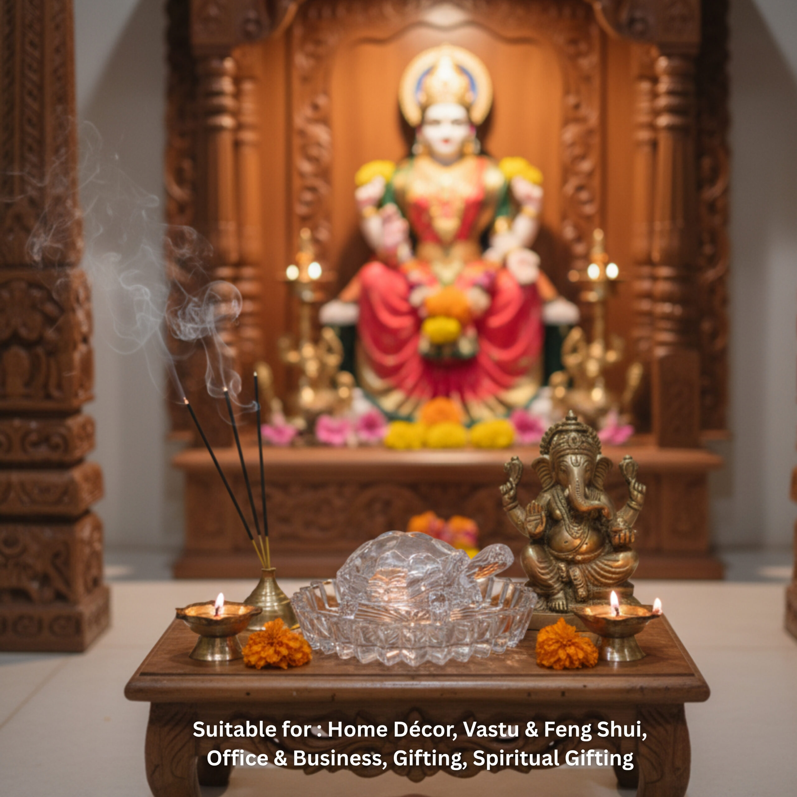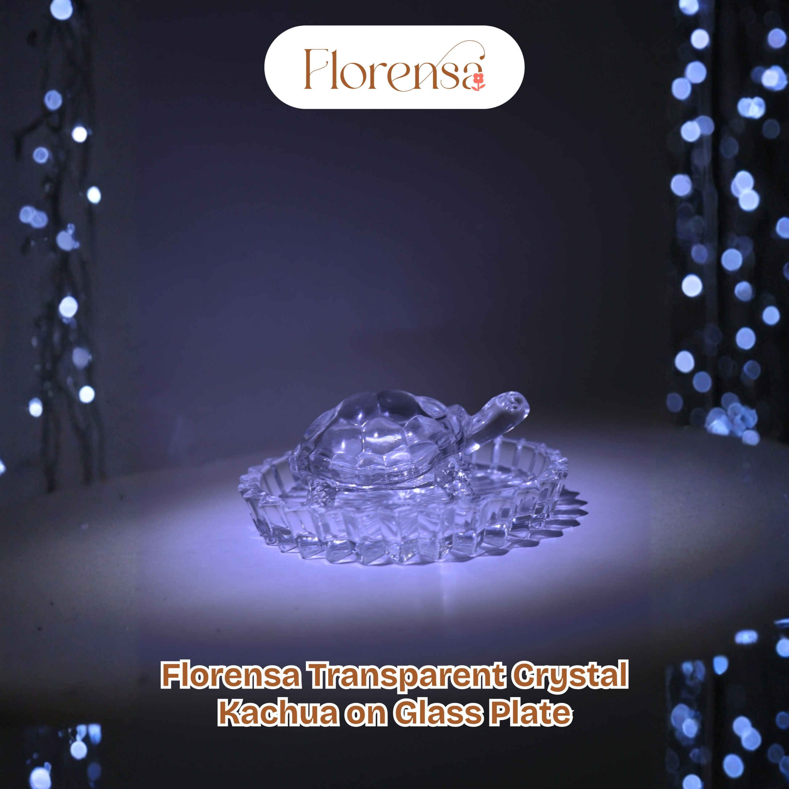 Bring elegance and positivity to your space with the Florensa Transparent Crystal Kachua on Glass Plate, crafted from high-quality crystal glass. This symbolic décor piece is perfect for home décor, office or business spaces, Vastu & Feng Shui arrangements, and spiritual gifting. Its refined craftsmanship and meaningful design make it an ideal gift or decorative accent for creating a serene and prosperous environment.